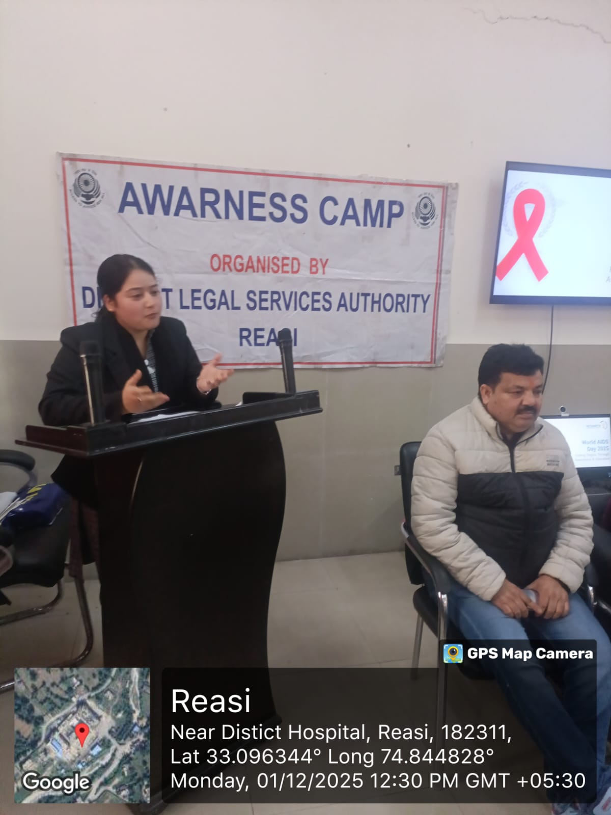 -Today on 01-12-2025, District Hospital Reasi organized Awareness Camp regarding World Aids Day in collaboration with District Legal services Authority Reasi and Govt. Nursing College Reasi, under the direction of Dr. Abdul Hamid Zarger, Director Health Services Jammu, and with the direct supervision of Chief Medical Officer Reasi, Dr. Mohd Ashraf Kholi, “World Aids Day 2025” was organized at District Hospital Reasi. under the theme " 'Overcoming disruption, transforming the AIDS response" was held under the guidance of Dr. Gopal Dutt, Medical Superintendent of District Hospital Reasi.